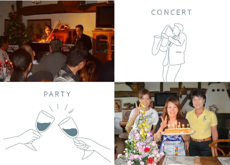雰囲気満点のコンサートやパーティも承ります。お気軽にお問い合わせください。